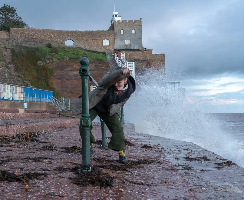 These images are from a very brief visit to Sidmouth seafront at high tide with a grand daughter……I was keen to show that, questions are raised by cropping. Has the mood and perhaps the essence of the picture changed for the better ???